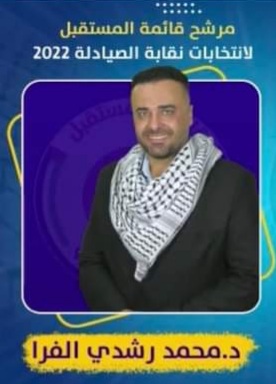 2022-06-04 الصيدلي محمد رشدي الفرا عضوا بنقابة الصيادلة بِسْمِ اللهِ الرَّحْمنِ الرَّحِيمِ {يَرْفَعِ اللَّهُ الَّذِينَ آمَنُوا مِنكُمْ وَالَّذِينَ أُوتُوا الْعِلْمَ دَرَجَات} خان يونس _ الشيخ ناصر تبرق عائلة الفرا في الوطن والخارج بـ أحر التهاني والتبريكات إلى ابن العائلة الصيدلي : محمد رشدي طاهر حماد الفرا بمناسبة فوزه بمقعد العضوية في انتخابات نقابة الصيادلة في قطاع غزة مع تمنياتنا له المزيد من التوفيق والسداد ألف مبارك مجلس عائلة الفرا لجنة العلاقات العامة والإعلام عدد الزوار 13072، أضيف بواسطة/ حمادة فؤاد الفرا